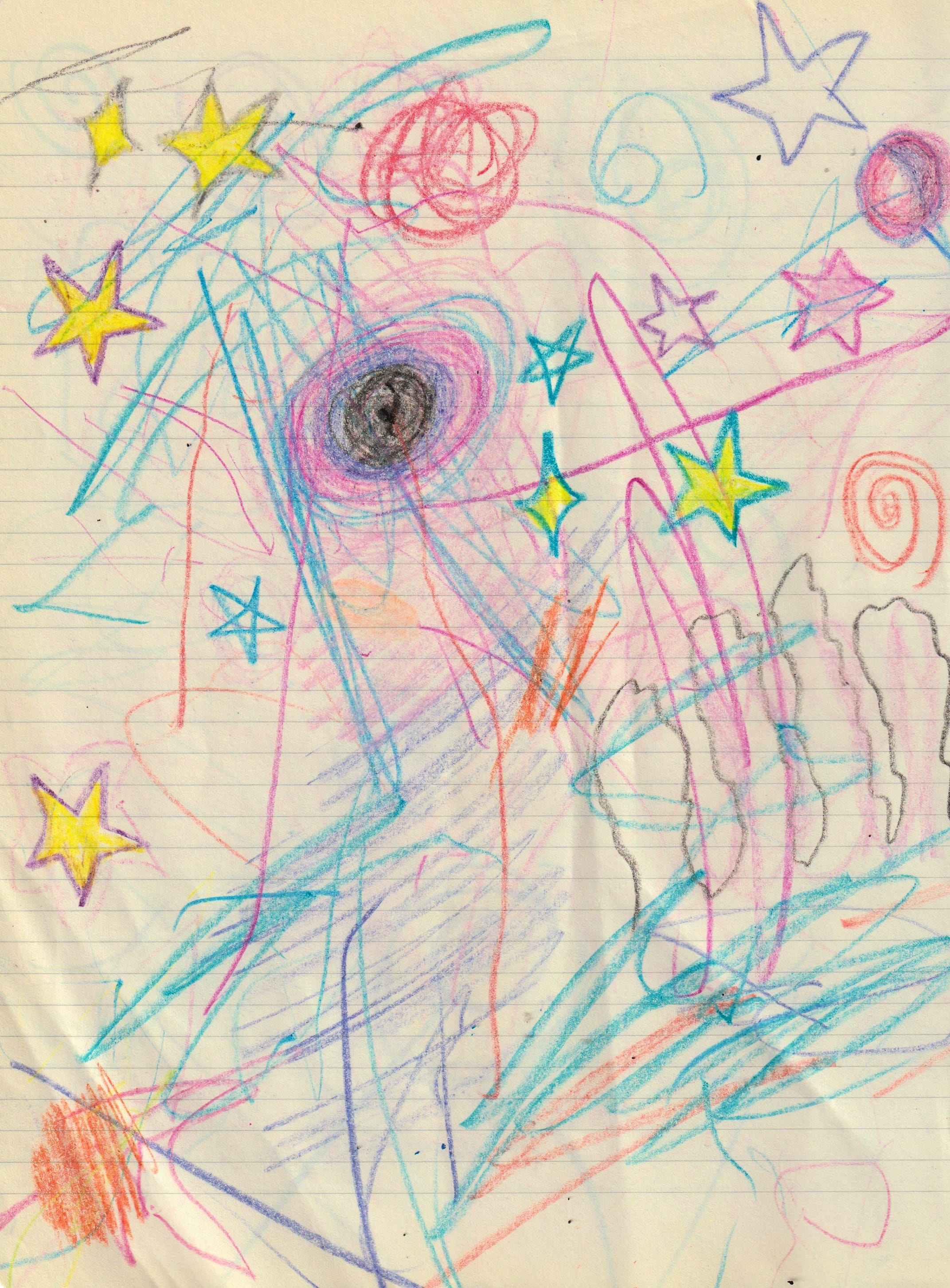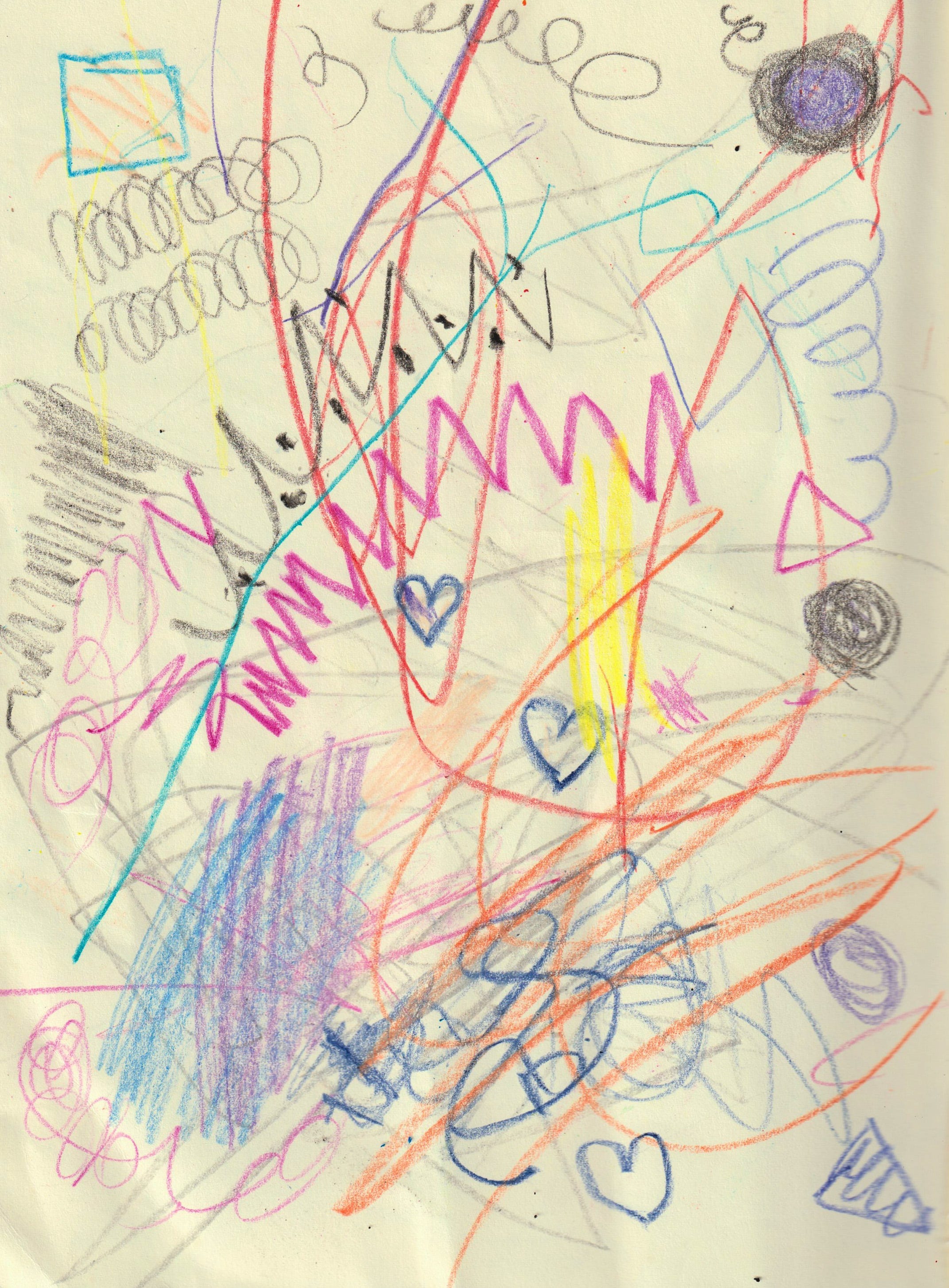 Cecilia will grab a crayon in her chubby little hand and just draw whatever she’s feeling. Sometimes she’ll stab the page repeatedly, other times she’ll draw long, flowing strokes. When I take a crayon, I immediately feel the pressure to produce something recognisable, something that earns its place on the page. Even before I draw, I’m already editing.